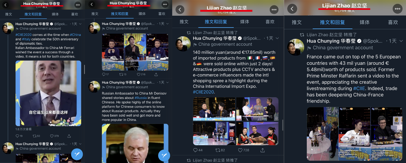 此次活动还得到我国外交部的积极认可,外交部新闻司司长华春莹发推7条,外交部新闻司副司长赵立坚转推4次。