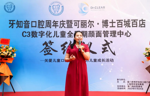 牙知音口腔连锁机构董事长蔡灿阳先生讲到:“牙知音口腔一直秉承仁德厚爱,精诚卓越的医疗服务使命,不断引进国内外顶尖医疗设备和高新产品。本次与可丽尔博士合作,成立福建首家可丽尔C儿童全周期颜面管理中心,为少年儿童提供更优质的医疗产品。