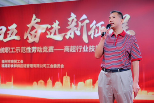 随后,福州市商贸工会主席吴厚烽强调,本次赛事积极响应国家“十四五”规划,深入学习贯彻习近平总书记关于工人阶级重要论述和来闽考察重要讲话精神,围绕坚持“3820”战略工程思想精髓,全面展示了新时代商超行业职工干部的技能和风采;他希望企业广大干部职工要立足岗位、创先争优、勇于担当,顺应经济转型对技能人才的需求,充分发扬劳模精神、劳动精神、工匠精神,继续推动福州市商超行业繁荣发展,谱写新时代福州商贸工会改革发展新篇章,以蓬勃昂扬的精神风貌和优异的成绩迎接建国73周年和党的二十大胜利召开。