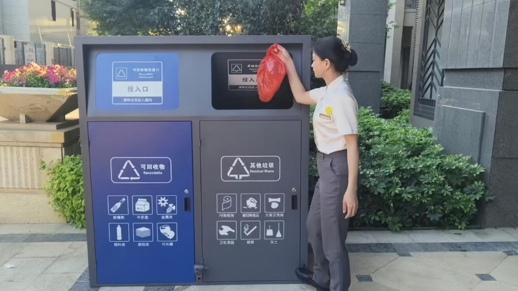 垃圾分类的 “时尚新风”,正在石狮世茂摩天城小区落地生根。85个全新垃圾分类箱投入使用,箱体不仅标注着清晰易懂的图文分类指引,方便各年龄段业主快速识别投放,更采用全密闭设计搭配定时清洁消杀机制,从源头解决了传统投放区 “杂乱堆积、异味四散” 的问题。与此同时,物业专人值守引导、分类知识定期科普等配套服务同步跟进,让主动分类从 “要求” 变成了业主的自觉习惯。