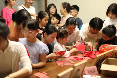 “巧剪凝芳”活动现场,市民游客们正在进行剪纸创作。