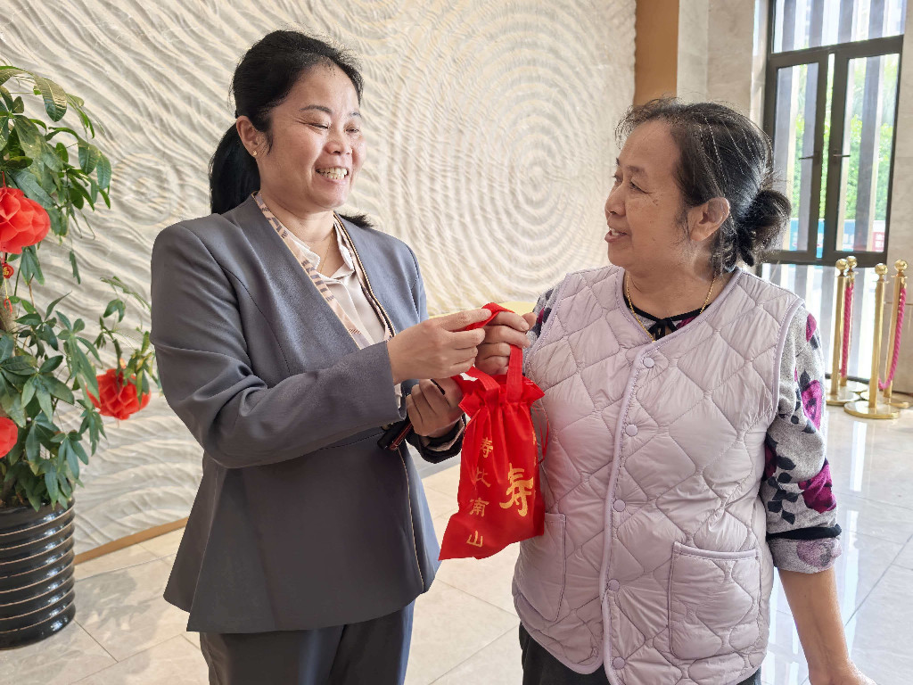 重阳佳节至,敬老正当时。10月29日,世茂服务东南区域福州熙悦府社区内温情涌动,一场以“重阳敬老·传承福韵”为主题的公益活动如期举行。物业服务中心将400份精心准备的福袋送至长者手中,每份福袋中装着象征平安顺遂的鸭蛋与寓意健康长寿的长寿面,以朴素的礼物传递绵长祝福,更以行动呼应福州深厚的重阳敬老传统。