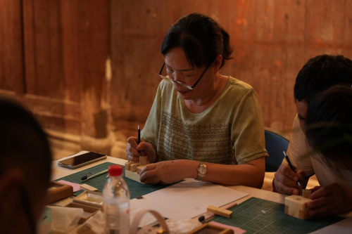 “一方红印鉴初心”活动中,一位市民正在认真雕刻。